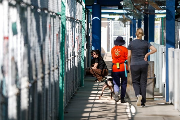 Most of the dog shelters are meant to provide an indoor and outdoor area. But some must now be split, with one dog staying in the outside area.